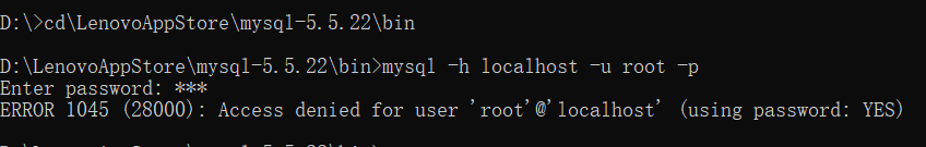 2.连接拒绝,1045错误,使用密码YES,但输入YES也是错误的