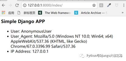 我们现在来正式利用request对象来开发一个叫request_demo的app,用来显示当前访问用户是谁,用户的IP地址及其所使用的浏览器。代码如下: