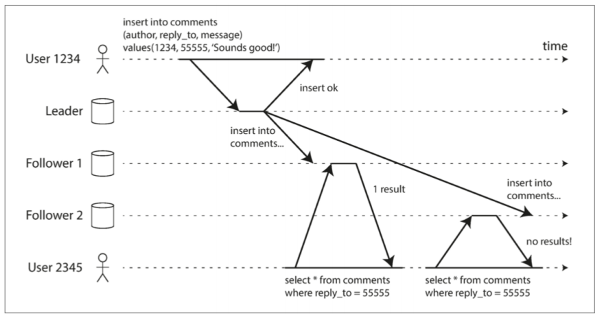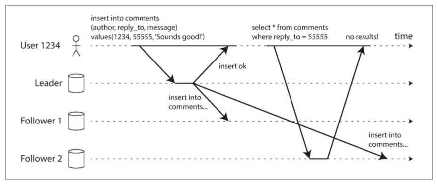 因为滞后时间太长引入的不一致性,可不仅是一个理论问题,更是应用设计中会遇到的真实问题。下面将重点介绍三个由复制延迟问题的例子,并简述解决这些问题的一些方法。