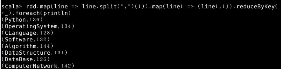 c.reduceByKey函数负责计算每门课的V的总和,(详细用法自己查)。(转换)
