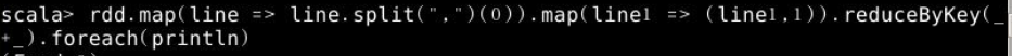 d.foreach(func),foreach函数负责将数据集中的每个元素传入func函数中执行,本例中为println()(输出)。(行动)