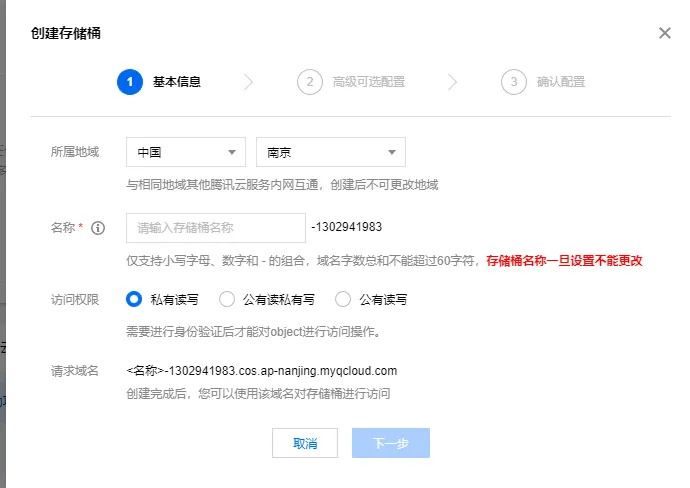 名称自己设定,访问权限改为公有读私有写,后面的基本保持默认即可