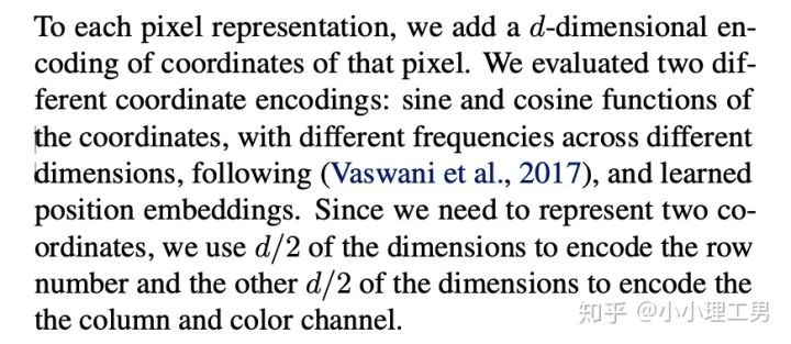 关于input positional embeddings主要有两种形式:1. fixed embedding: 使用不同频率的sin和cos分别对每个位置H, W生成d/2 dim的encoding,最后再cat,以及2. learned embeddings