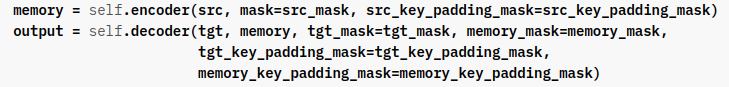 Transformer类:拼接TransformerEncoder和TransformerDecoder的最终完全体,encoder的输出即作为decoder的侧面外部sequence输入(即memory)
