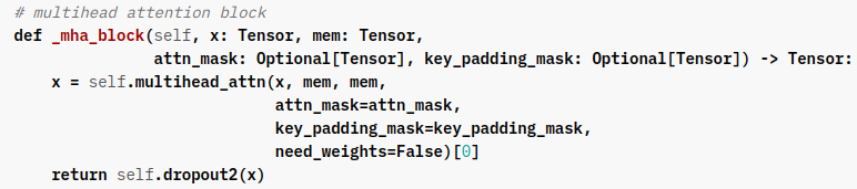 值得注意的是,依然是decoder的forward逻辑,这个侧面来的memory会作为每个decoder block的forward的输入,一次又一次。