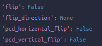 第六个:RandomFlip3D,执行flip。值得注意的是这个类是集成mmdet对于图像的RandomFlip类,而且这里也和图像有关系,在call时第一句就是传dict给调用父类的call,也就是执行一下是不是flip一下图像(如果有的话),另外初始化时指定是否sync_2d,如果是的话,跟随已经对图像执行了的是否flip了的结果对点云flip。我这次执行完恰好没有flip