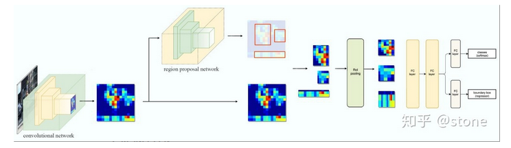 - Note: 另外在anchor具体是怎么应用的这个事上,个人是这样感觉的,其不会像真正的proposals一样在feature map上crop出来roi pooling之类的,而是体现在训练RPN这个地方label的制作上,可以想象目标值自然是需要ground-truth和anchor的信息对应着来的。而且,看最上面第二个图也可以发现,这里不过就是用conv得到了channels是18 (9x2)和36 (9x4)的输出而已,然后就用这个vector算loss了,所以肯定是自然而然地蕴涵在我们让这些元素去的位置上了