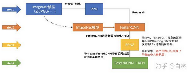 - Step 4-5 can be repeated to train RPN and Fast R-CNN alternatively if needed. But "A similar alternating training can be run for more iterations, but we have observed negligible improvements”. Twice for now is pretty enough