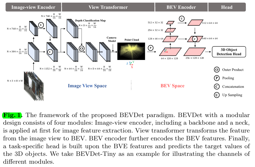 View Transformer We apply the view transformer proposed in [LSS] to construct the BEVDet prototype. The adopted view transformer takes the image-view feature as input and densely predicts the depth through a classification manner. Then, the classification scores and the derived image-view feature are used in rendering the predefined point cloud