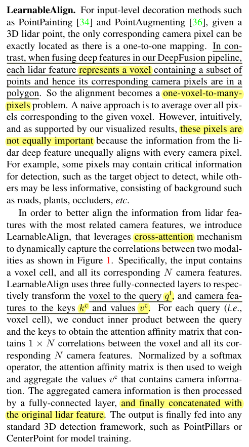 一个point-level fusion的方式,实际上是voxel级别上paint. 虽然用了cross attention不过其关注点其实是在于alignment quality上