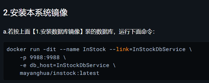 docker run -dit --name InStock --link=InStockDbService \