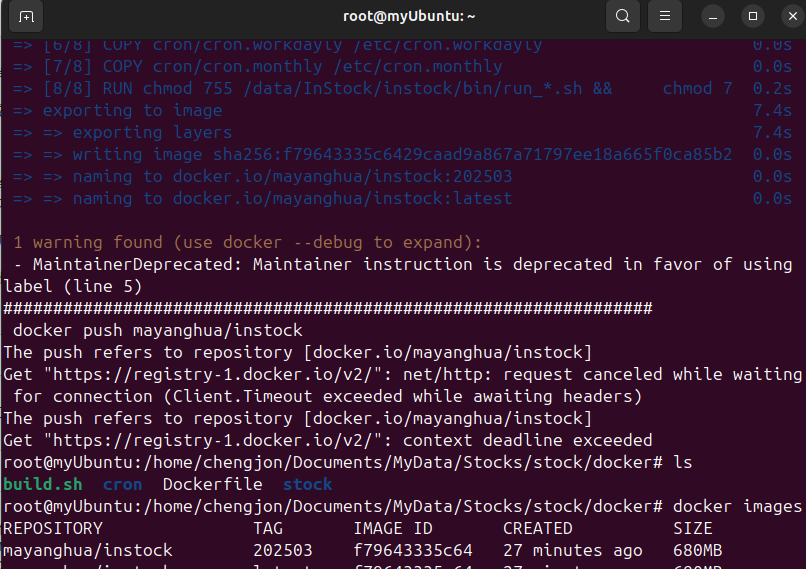 如果看到mayanghua/instock镜像,并且有对应的标签(如202503和latest),则说明镜像已经构建成功。