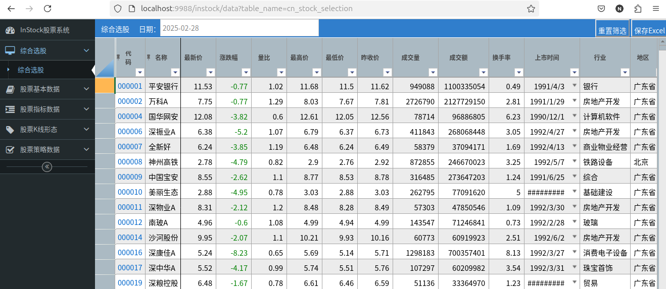 InStock股票系统,抓取每日股票、ETF关键数据,计算股票技术指标、筹码分布,识别K线各种形态,综合选股,内置多种选股策略,支持选股验证回测,支持自动交易,支持批量时间,运行高效,支持PC、平板、手机移动设备显示,是量化投资的好帮手。