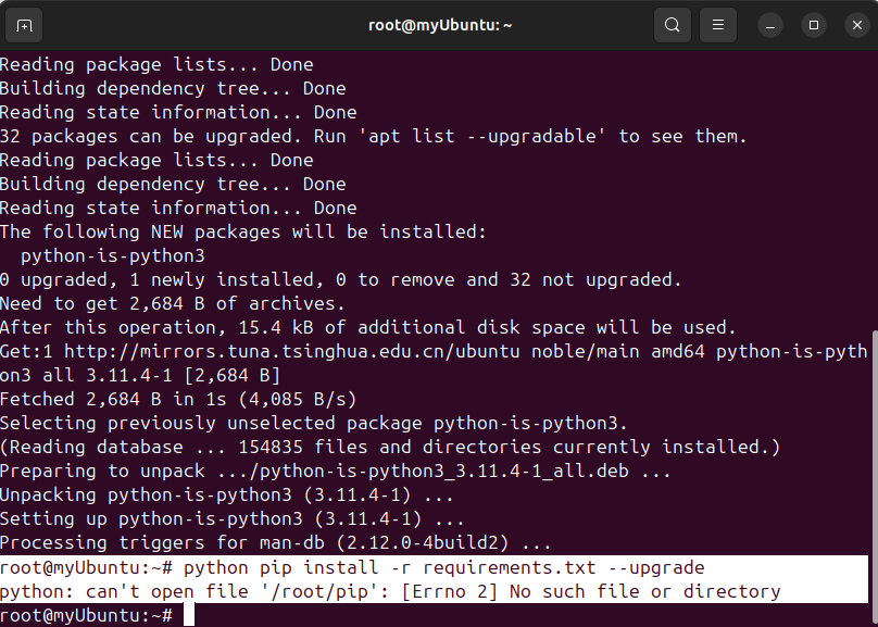 安装 python-is-python3 包,运行以下命令安装 python-is-python3 包:
