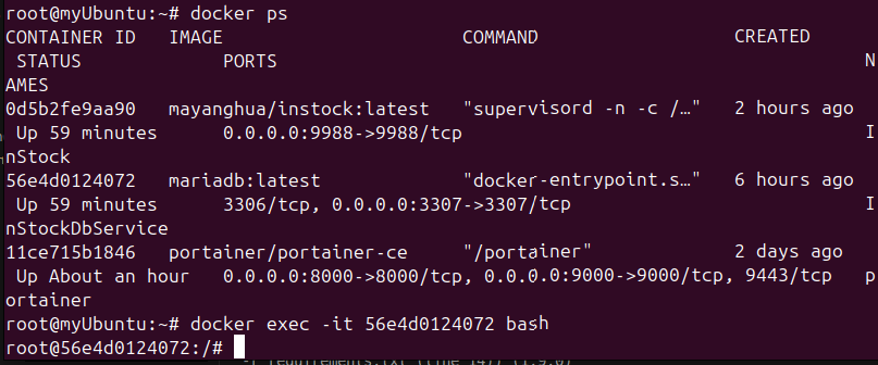 docker exec -it InStock bash