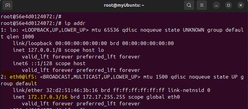 在容器中使用ip addr命令