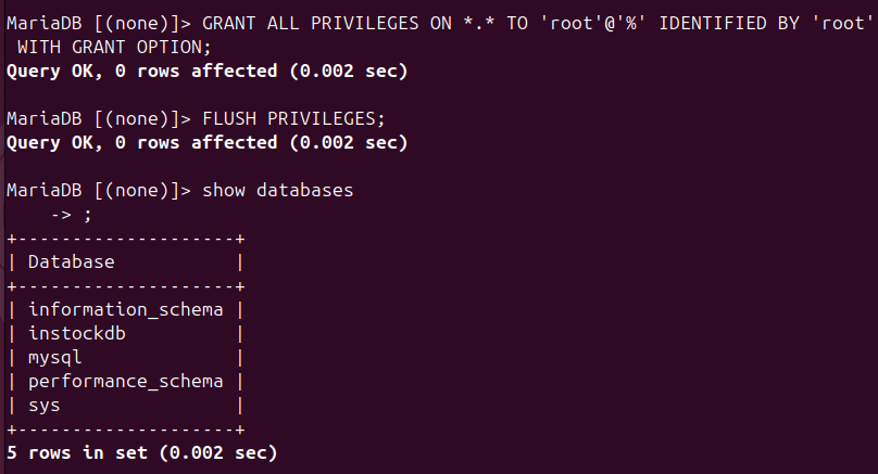 GRANT ALL PRIVILEGES ON *.* TO 'root'@'%' IDENTIFIED BY 'root' WITH GRANT OPTION;