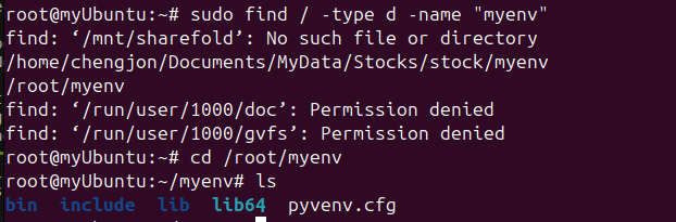 sudo find / -type d -name "myenv"