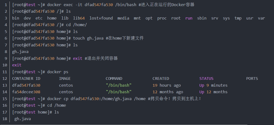 docker exec #进入容器后开启一个新的终端,可以在里面做一些操作(常用!)
