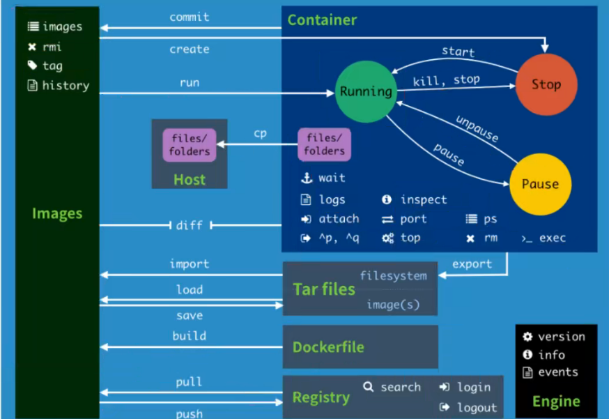 #容器怎么来? docker run 创建并运行一个容器,处于运行状态。