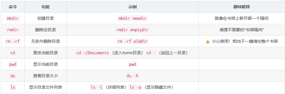 rm:删除文件或目录。rm file.txt 删除 file.txt 文件,rm -r directory 递归删除 directory 目录及其所有内容,rm -rf directory 强制递归删除(谨慎使用)。
