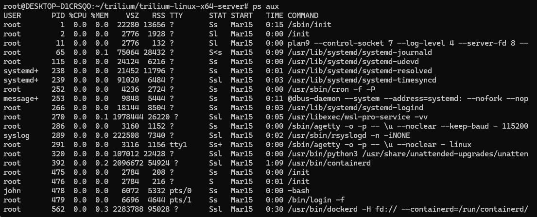 COMMAND:启动该进程的命令或可执行文件的名称及其参数。例如,/sbin/init 是系统的初始化进程,是所有其他进程的祖先进程;/usr/lib/systemd/systemd-journald 是 systemd 的日志守护进程,负责收集和存储系统日志。