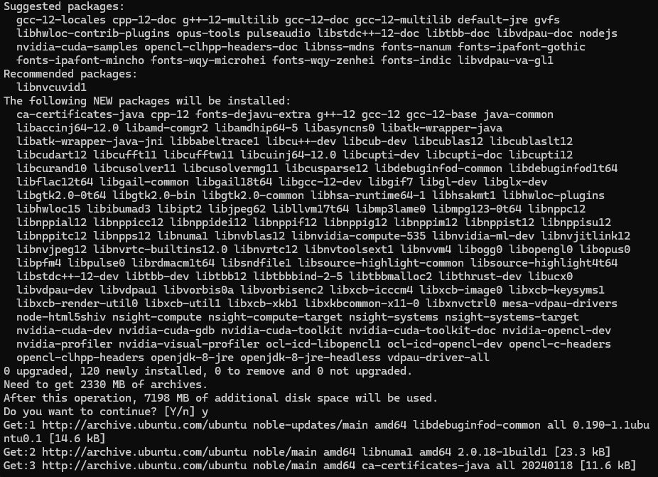 输入以下命令进行 Nvidia 驱动的安装(要2G多的空间啊!)