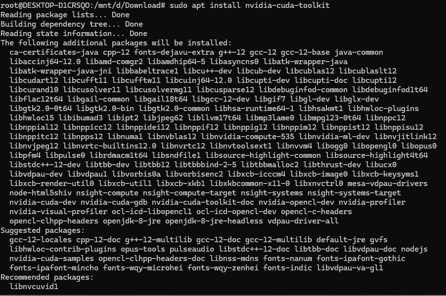 然后运行命令:sudo apt install nvidia-cuda-toolkit