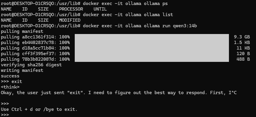 docker exec -it ollama ollama run qwen3:14b
