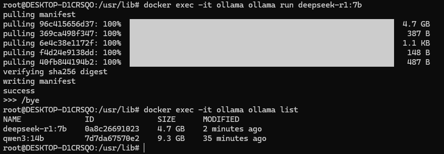 docker exec -it ollama ollama run deepseek-r1:7b