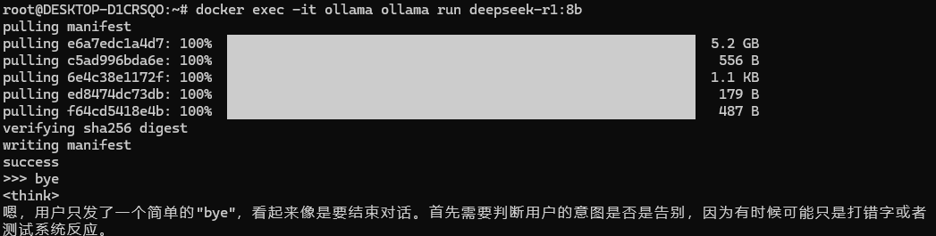 docker exec -it ollama ollama run deepseek-r1:8b