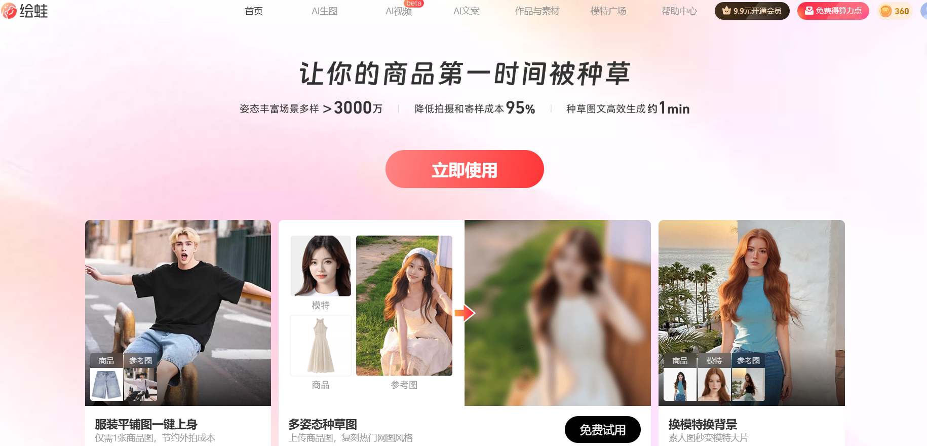 【AI图像工具】9.9元薅259元AI工具!种草文案+模特图+高清修图,中小商家逆袭就靠它