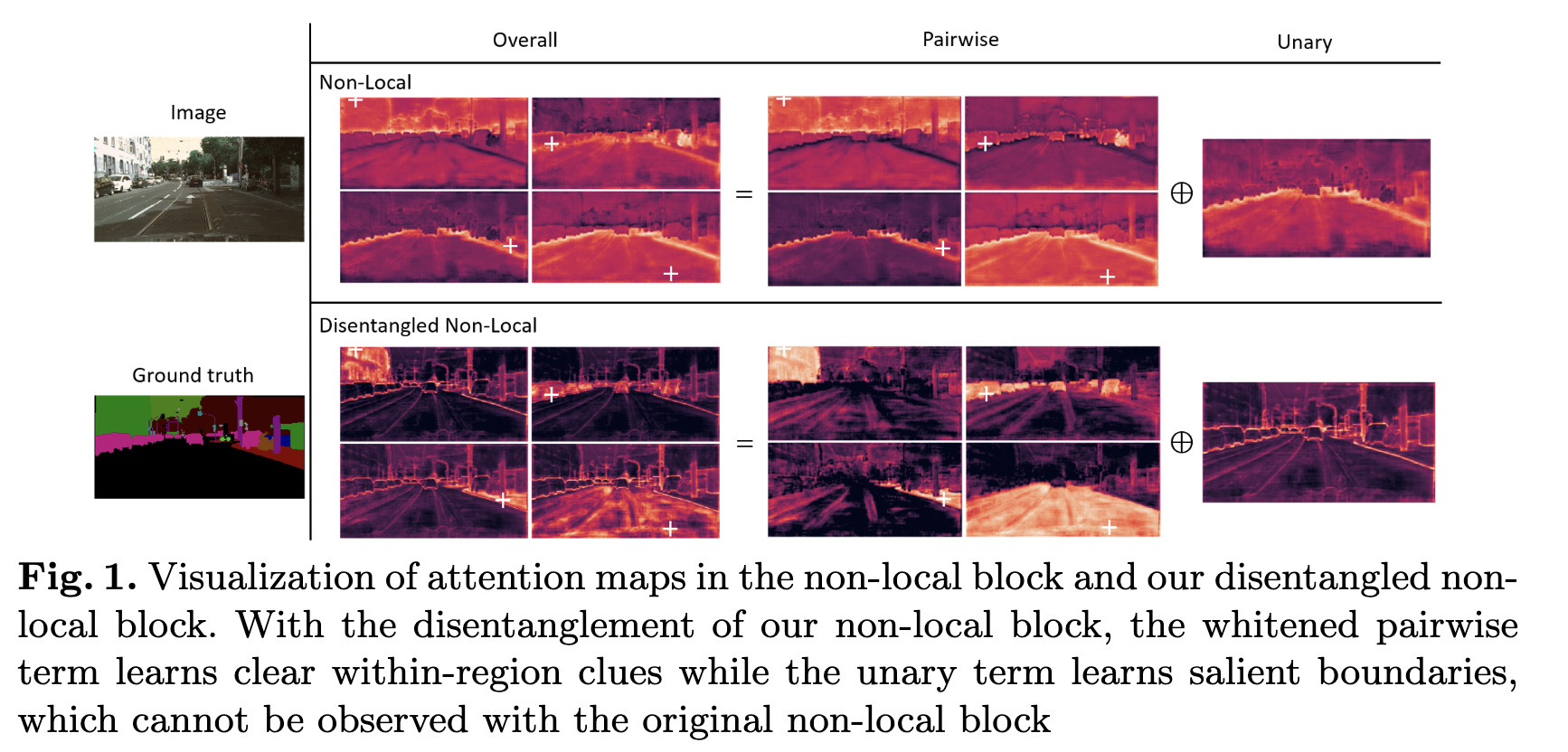 该文认为non-local除了刻画像素间的两两关系也刻画了像素的显著性,分别记为pairwise与unary,并且证明了两者同时学习的时候会造成相互影响,于是对其进行了解耦