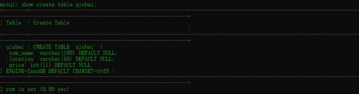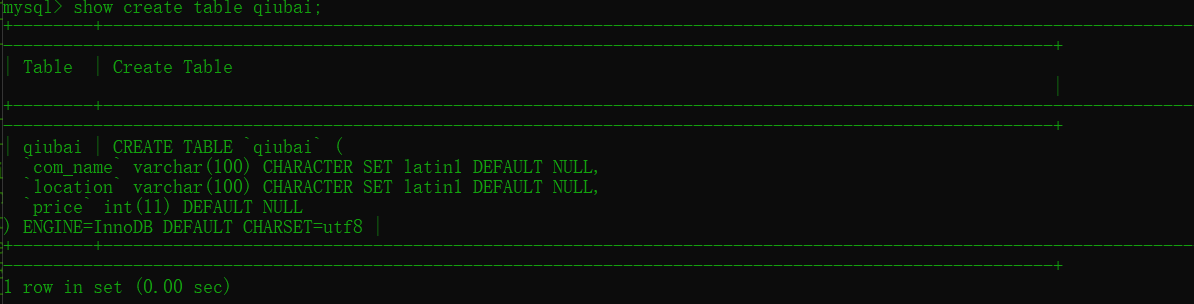 上网查说可能是没有commit(),但是加上之后也无济于事,在努力了一晚上之后,我决定从mysql的编码入手,先查看一下所建表的编码: