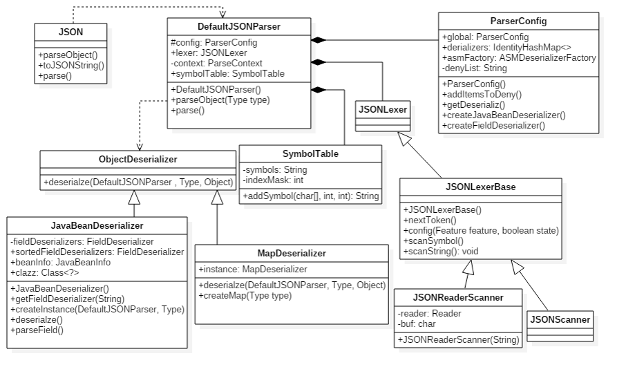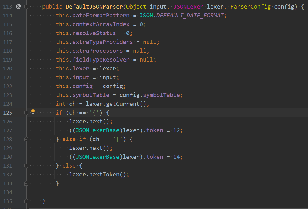 主要将上一步生成的JSONScanner对象赋值给JSONlexer对象lexer并进行一些初始化操作,ch设置为‘{’,token设置为JSONTOKEN.LBRACE即12