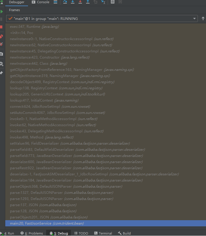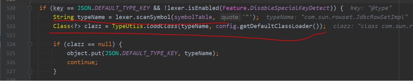 再获取到我们payload中@type的值为"com.sun.rowset.JdbcRowSetImpl",并通过loadClass加载