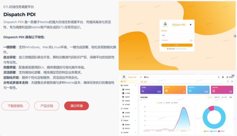 Dispatch PDI震撼登场!这是一款基于Kettle的强大在线任务调度平台,凭借其卓越的高效性与灵活性,专为调度和监控Kettle客户端生成的ETL任务而精心打造。它将助力您轻松实现任务的高效管理和精准监控,让ETL任务的执行更加顺畅、可控。