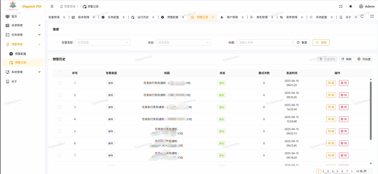 DPDI 预警记录任务失败预警通知发送历史,助力快速溯源问题。