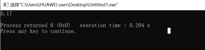#include<stdio.h> int func(int, int); int main() { int k=4,m=1,p1,p2; p1 = func(k,m) ; p2 = func(k,m) ; printf("%d,%d\n",p1,p2) ; return 0; } int func(int a,int b) { static int m=0,i=2; i += m+1; m = i+a+b; return (m); }