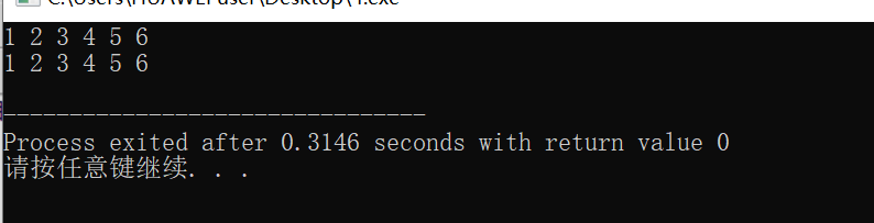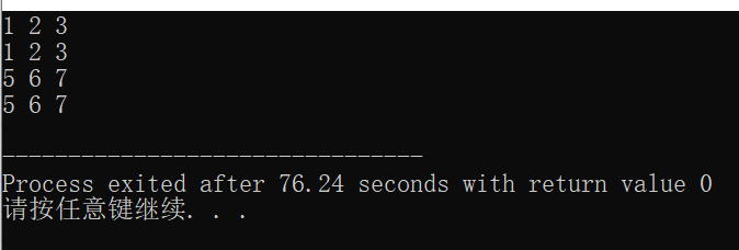 #include <stdio.h> #include <stdlib.h> const int N=3; int main() { int a[N]; int *p,i; // 通过指针变量p,完成数组元素输入 for(p=a; p<a+N; p++) scanf("%d", p); // 过指针变量p,完成数组元素输出 for(p=a; p<a+N; p++) printf("%d ", *p); printf("\n"); p = a; //通过指针变量p,完成数组元素输入 for(i=0; i<N; i++) scanf("%d", p+i); // 通过指针变量p,完成数组元素输出 for(i=0; i<N; i++) printf("%d ", *(p+i)); printf("\n"); return 0; }