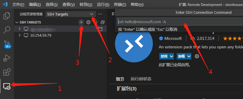 安装完成后侧栏菜单多出一个远程资源管理器选项