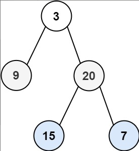 输入:root = [3,9,20,null,null,15,7]