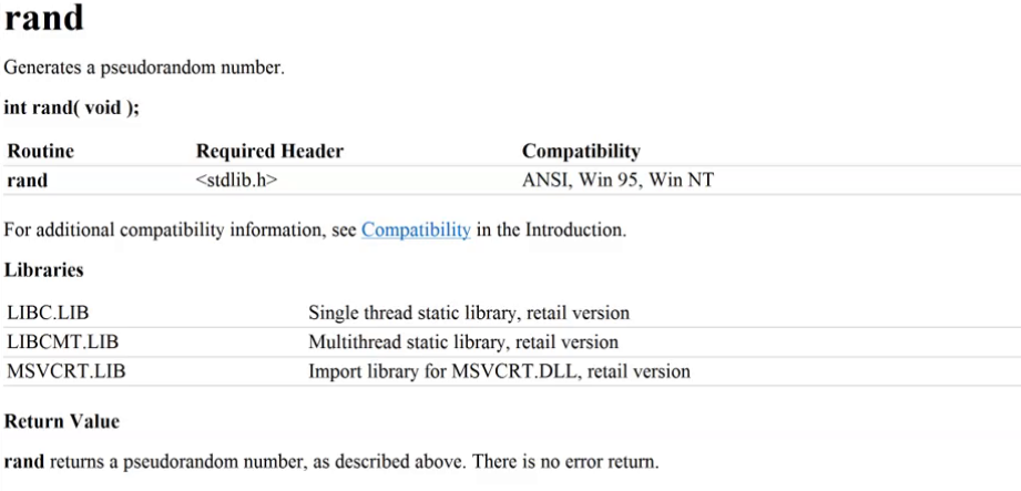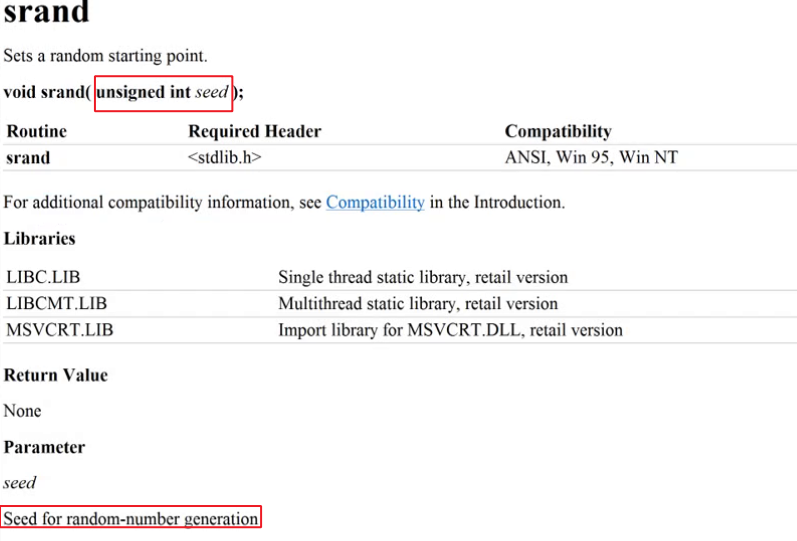 后一句中说明在使用rand函数前要定义一个srand()函数