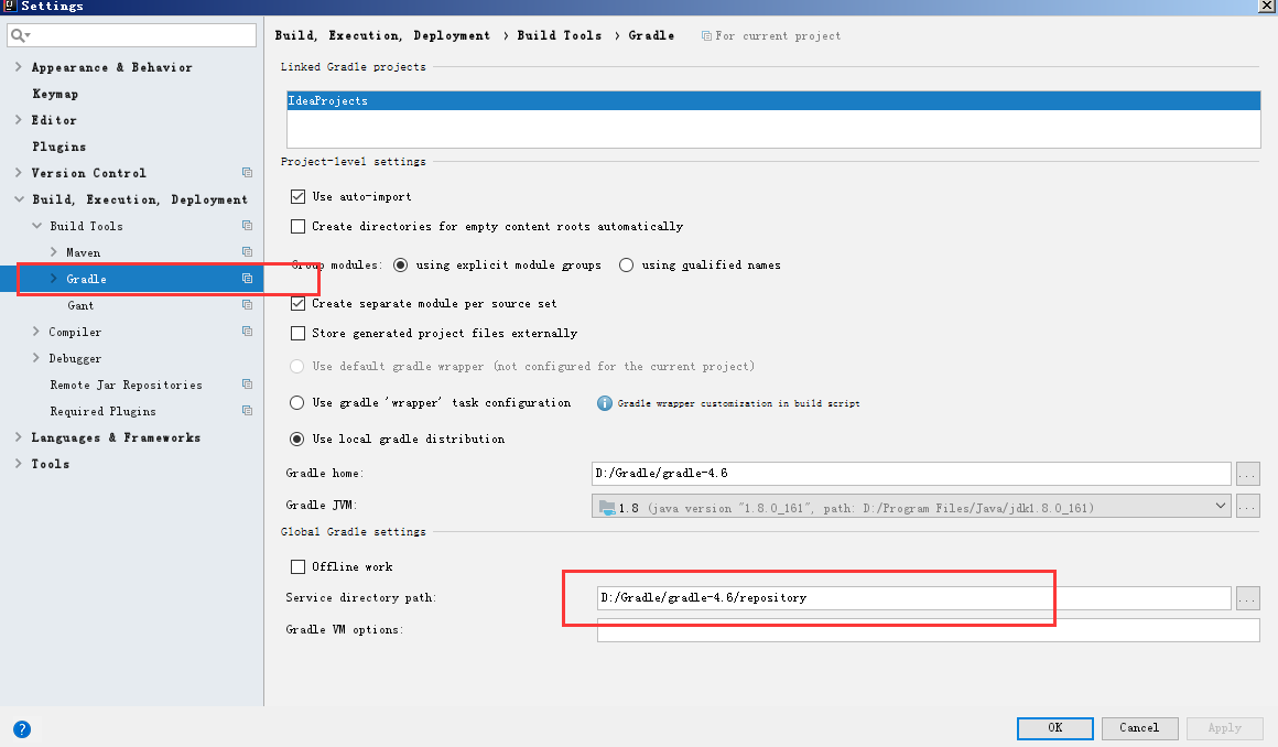 这样配置的话,新的包会存放至 D:\Gradle\gradle-4.6\repository\caches\modules-2\files-2.1下面。