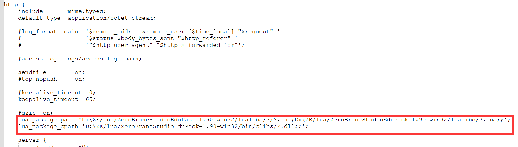 进入OpenResty下的nginx的配置,并添加以下配置ZeroBraneStudio这部分ZeroBraneStudio的软件路径