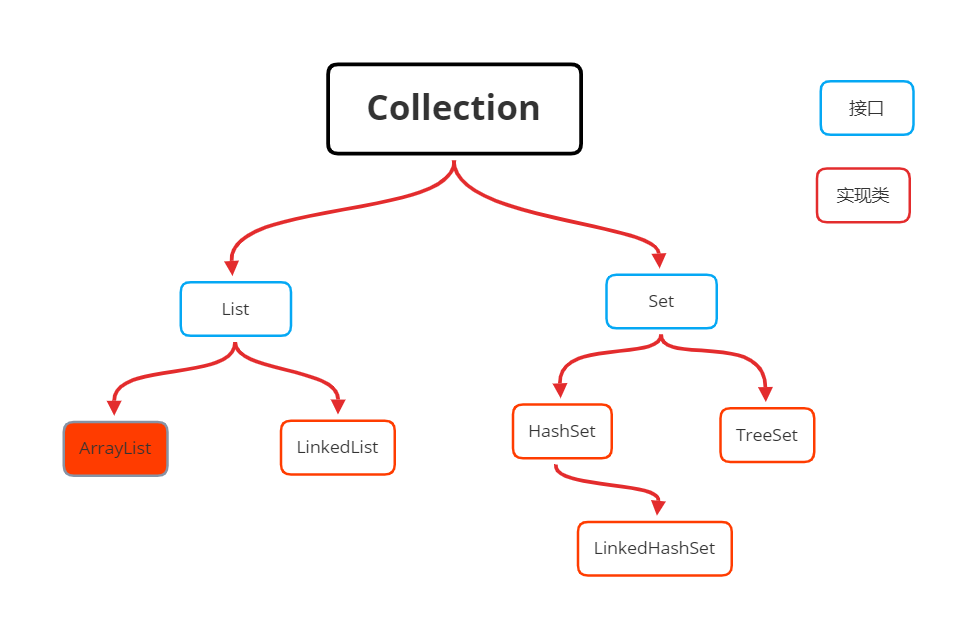 - 注意:集合中只能存储引用类型的数据,如果要存储基本数据类型可以选用包装类。