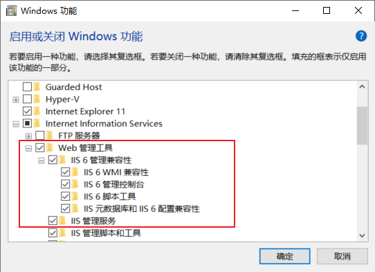 启用关于Web管理工具相关的服务(因为不是很了解具体哪一个,和IIS相关的我全部都启动了)