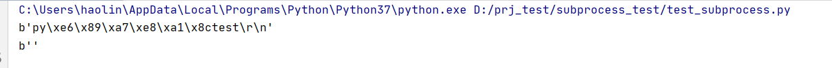 import subprocess sbpss = subprocess.Popen('python test.py',stdout=subprocess.PIPE,stderr=subprocess.PIPE) print(sbpss.stdout.read()) print(sbpss.stderr.read())