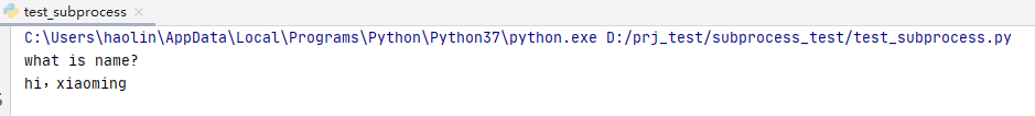 在name.py中,使用input方法来接收用户输入,同时在popen中设置stdin参数为一个通道,这样就用可以通过communicate('xiaoming'.encode('utf-8')),来传入用户的输入到子进程中,子进程接着向下执行