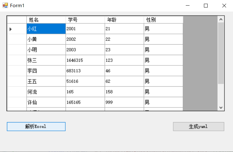 然后启动程序,点击button按钮,即可读取Excel中的数据。